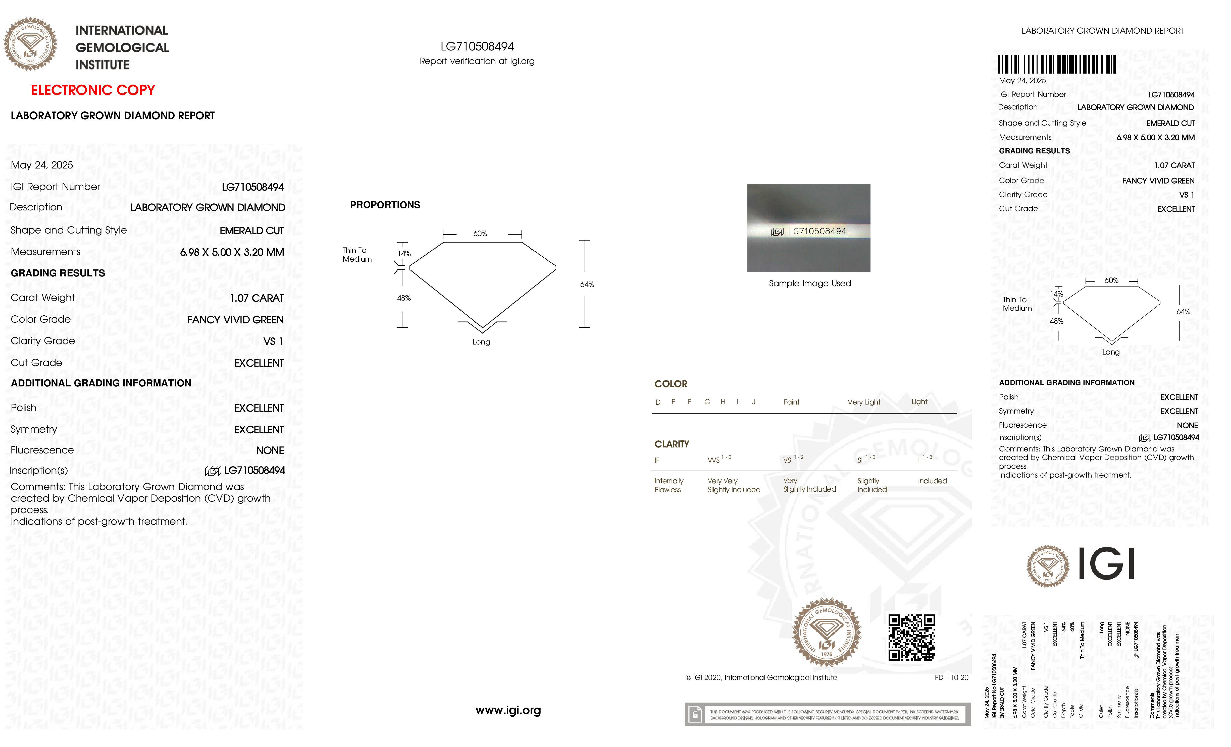 This Certified 1.07 Carat 6.98 x 5.00 x 3.20 mm Green Emerald Lab Grown Diamond has been hand selected by our GIA-certified gemologists for its exceptional characteristics and rarity.
