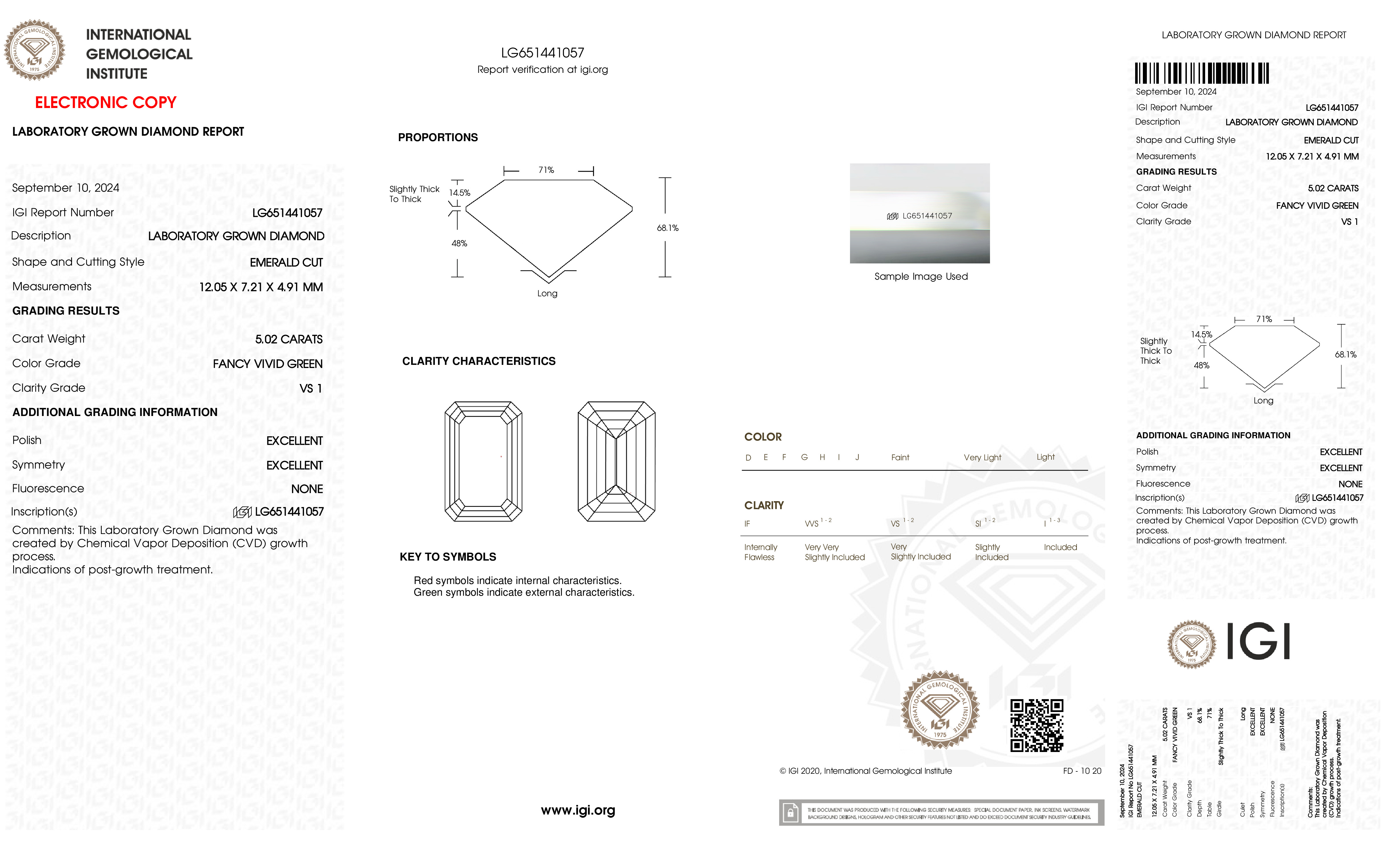 This Certified 5.02 Carat 12.05 x 7.21 x 4.91 mm Green Emerald Lab Grown Diamond has been hand selected by our GIA-certified gemologists for its exceptional characteristics and rarity.