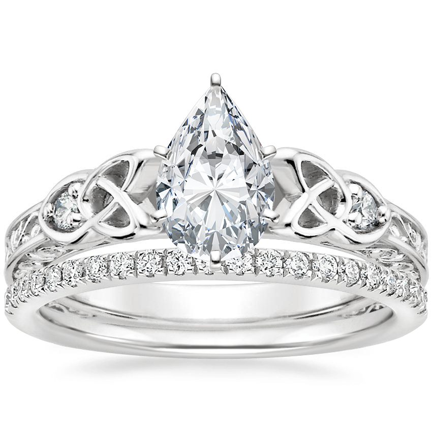 My fiance picked this ring based on my Irish heritage, and the Celtic knot rings I wear, knowing I would love its unique beautiful look! The scroll work makes the ring so elegant, the subtle Celtic knot is perfect, not too big, nor too small. I love how the knot frames the diamond. With all the intricate design, I thought the ring might appear a bit big, but it is petite and perfect in size! There is no ring anywhere as beautiful, and I'm so proud to wear it.