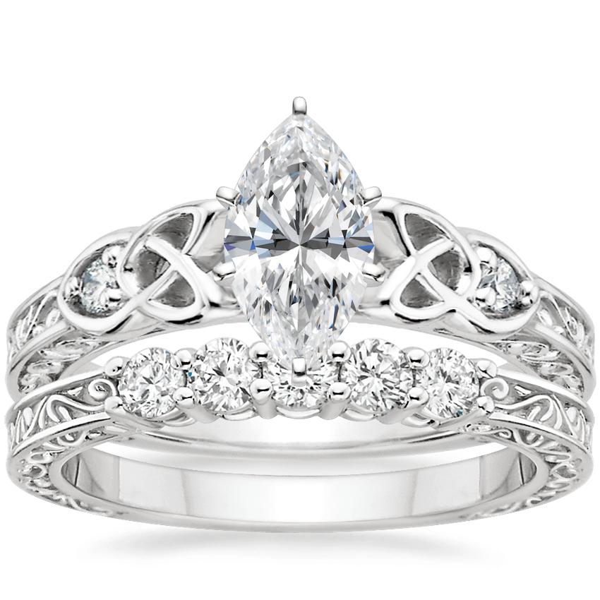 I love the combination of antique scroll and celtic knots. We chose to change out the side stones for sapphires.