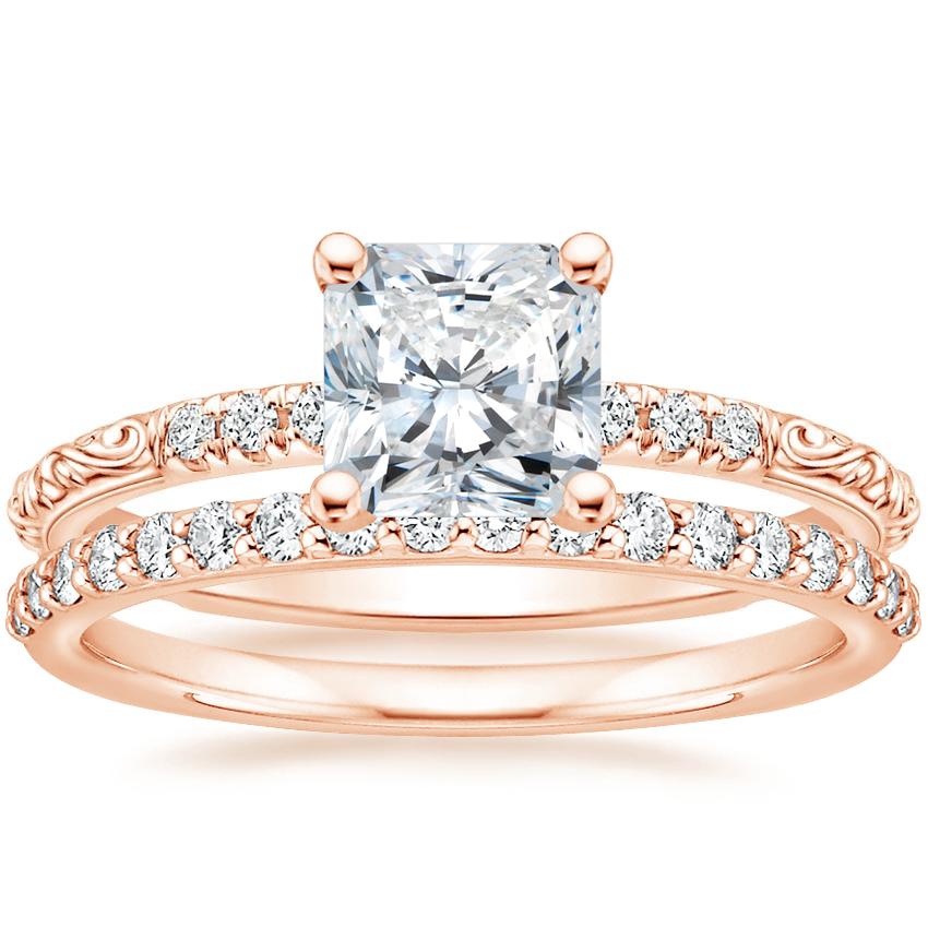 14K Rose Gold Adeline Diamond Ring with Petite Shared Prong Diamond Ring (1/4 ct. tw.)