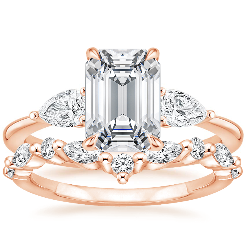 Adorned Opera Diamond Ring (1/2 ct. tw.) with Curved Versailles Diamond Ring in 14K Rose Gold