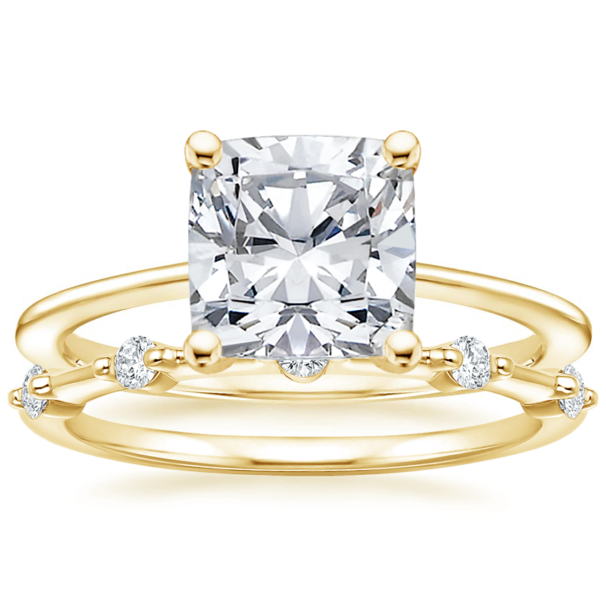 18K Yellow Gold Aimee Ring with Aimee Diamond Ring with 1.3 Carat Cushion Lab Grown Diamond
