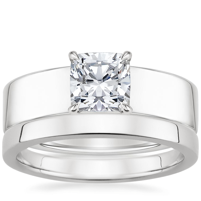 18K White Gold Alden Diamond Ring with 2.5mm Quattro Wedding Ring