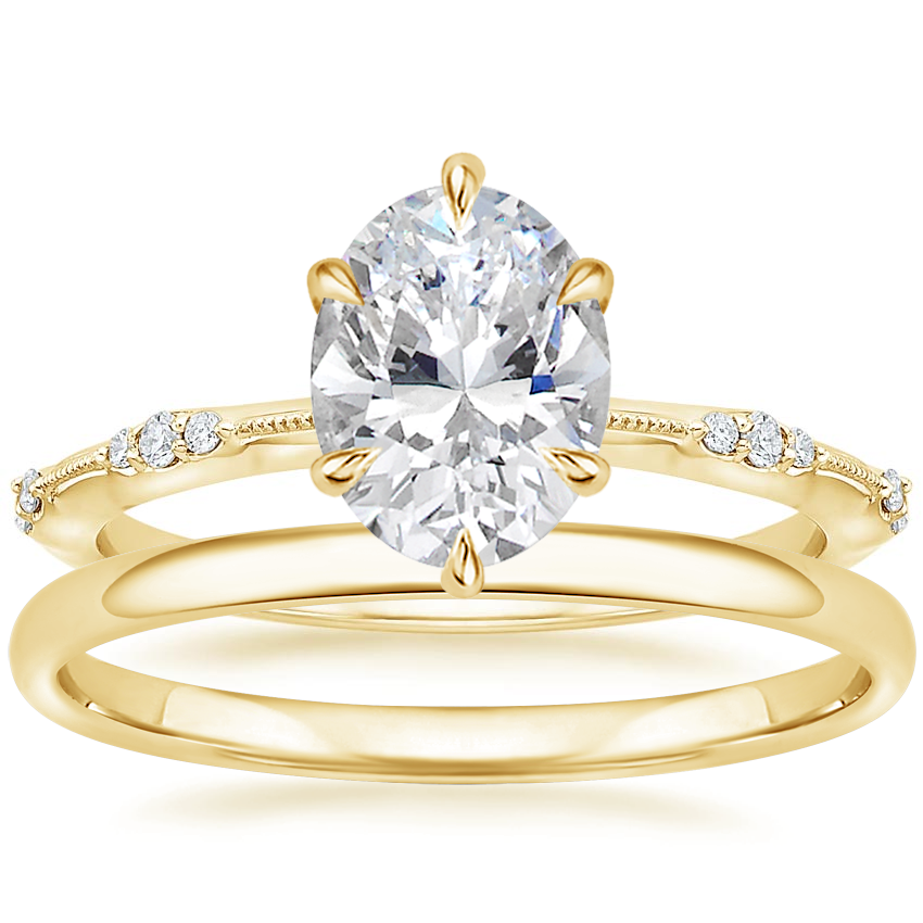 18K Yellow Gold Alena Diamond Ring with 1.5mm Slim Profile Wedding Ring