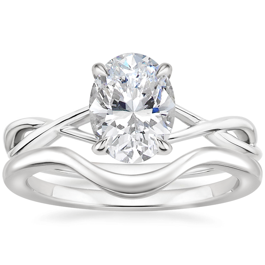 18K White Gold Alya Ring with Midi Half Moon Nesting Ring