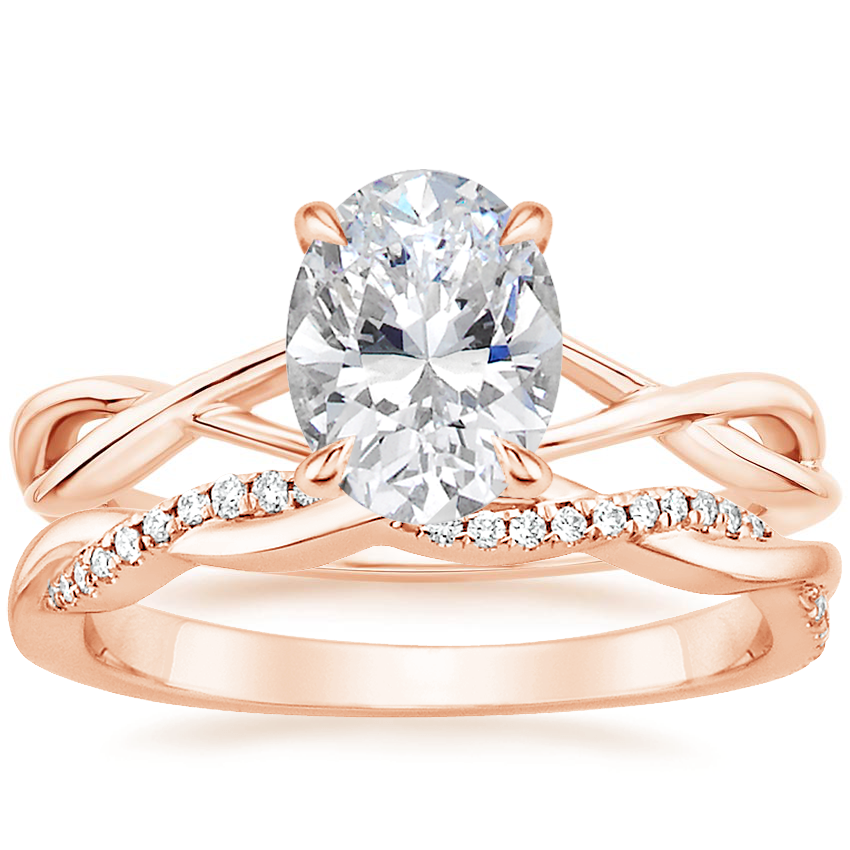 14K Rose Gold Alya Ring with Petite Twisted Vine Diamond Ring (1/8 ct. tw.)