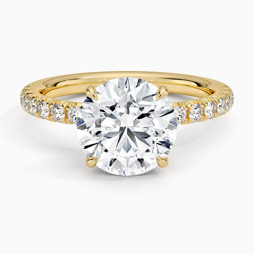 18K Yellow Gold Amelie Half Coverage Lab Diamond Ring with 2.6 Carat Round Lab Grown Diamond