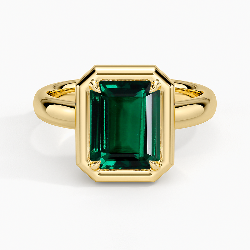 18K Yellow Gold Andrea Bezel Prong Ring with 11x8mm Lab Grown Emerald