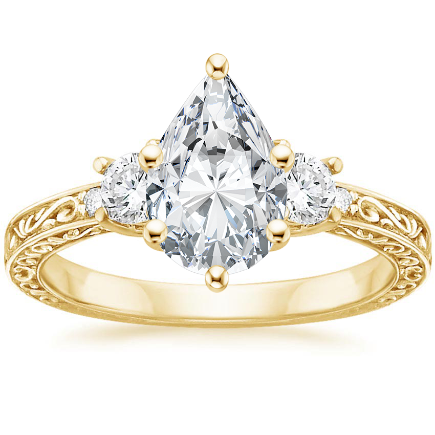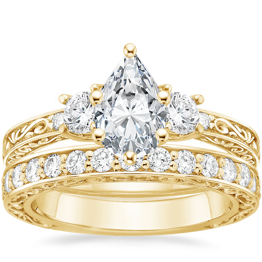 18K Yellow Gold Antique Scroll Three Stone Trellis Diamond Ring (1/3 ct. tw.) with Antique Scroll Diamond Ring (2/5 ct. tw.)