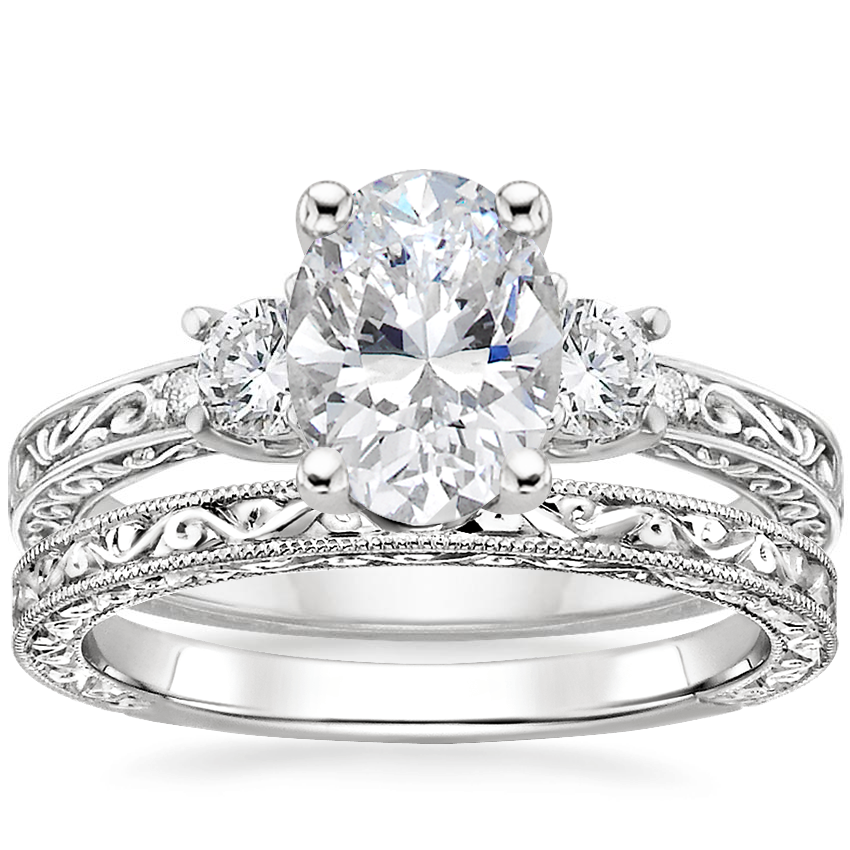 Platinum Antique Scroll Three Stone Trellis Diamond Ring (1/3 ct. tw.) with Hudson Ring