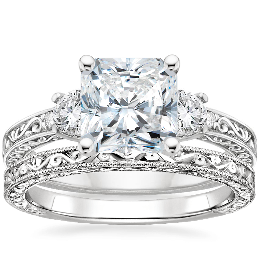 18K White Gold Antique Scroll Three Stone Trellis Diamond Ring (1/3 ct. tw.) with Hudson Ring