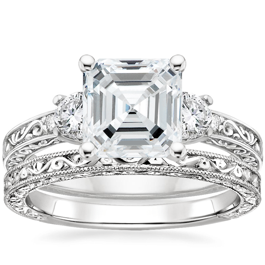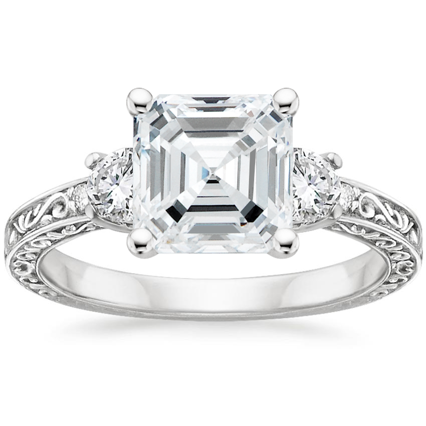 18K White Gold Antique Scroll Three Stone Trellis Diamond Ring (1/3 ct. tw.) with Hudson Ring
