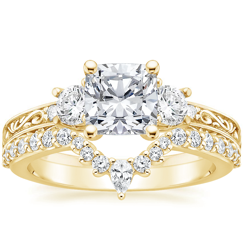 14K Yellow Gold Antique Scroll Three Stone Trellis Diamond Ring (1/3 ct. tw.) with Luxe Lunette Diamond Ring (1/3 ct. tw.)