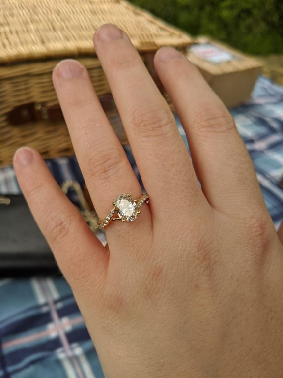 The ring is beautiful (she loved it) and the Brilliant Earth customer service team was great trying to get this ring to me during the pandemic. Highly recommend going with Brilliant Earth for your jewelry.