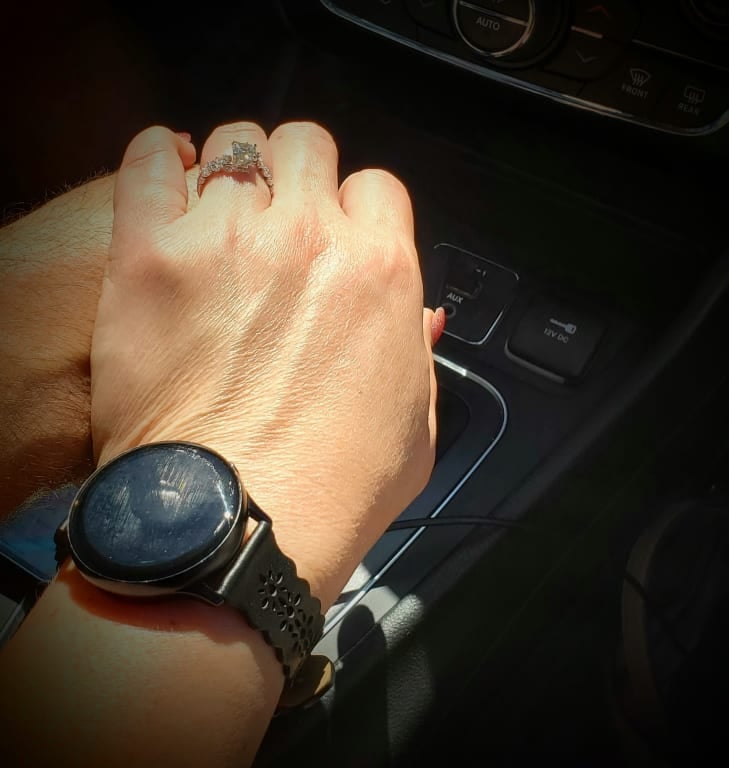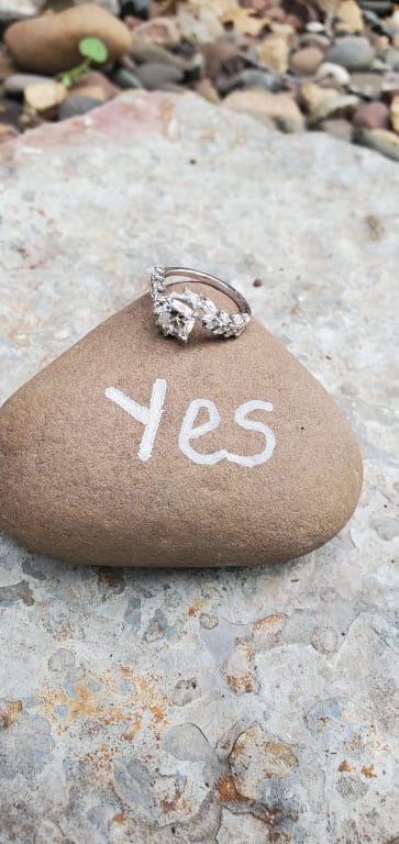 A stylish engagement ring that my "fiancé" loves! If you are looking for an alternative to a traditional diamond ring, pick yourself up a Moissanite!