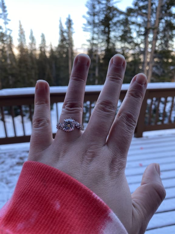 The ring pictured is not the exact ring I purchased. I used the sweeping ivy setting with the peach morganite stone. It is absolutely breath taking! My fiancé loves her wedding ring!!! ...Read More
