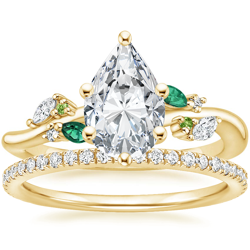 18K Yellow Gold Arden Lab Diamond Ring with Lab Emerald Accents with Luxe Ballad Diamond Ring (1/4 ct. tw.) with 1.22 Carat Pear Lab Grown Diamond