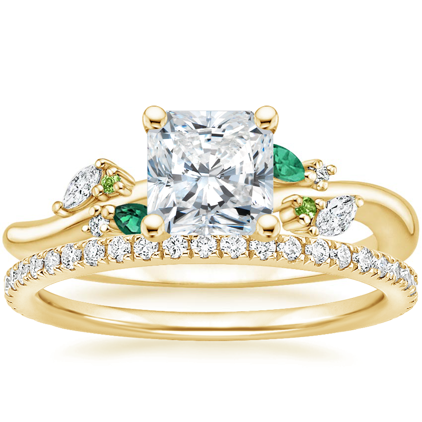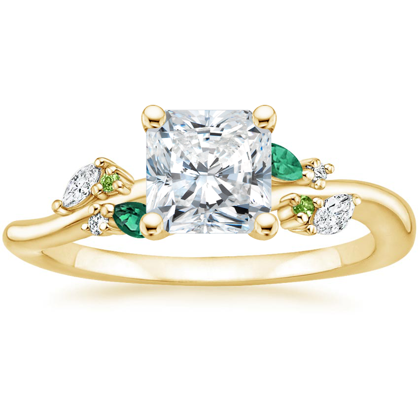 18K Yellow Gold Arden Diamond Ring with Lab Emerald Accents with Luxe Ballad Diamond Ring (1/4 ct. tw.) with 0.51 Carat Radiant Diamond