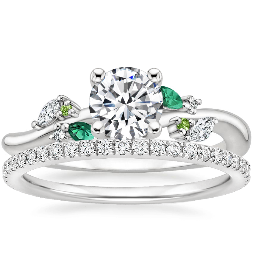 Platinum Arden Diamond Ring with Lab Emerald Accents with Luxe Ballad Diamond Ring (1/4 ct. tw.)