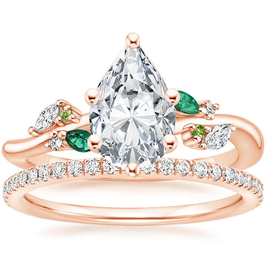 14K Rose Gold Arden Lab Diamond Ring with Lab Emerald Accents with Luxe Ballad Diamond Ring (1/4 ct. tw.) with 1.22 Carat Pear Lab Grown Diamond