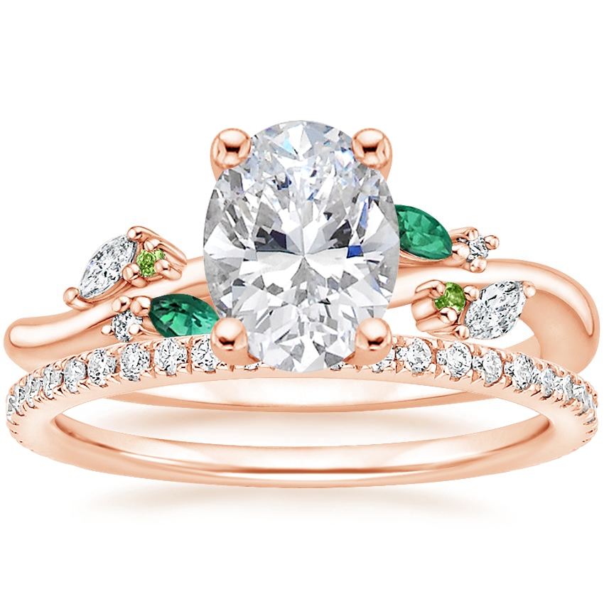 Arden Diamond Ring with Lab Emerald Accents with Luxe Ballad Diamond Ring (1/4 ct. tw.) in 14K Rose Gold