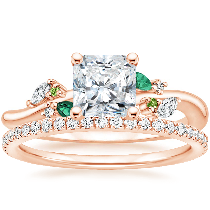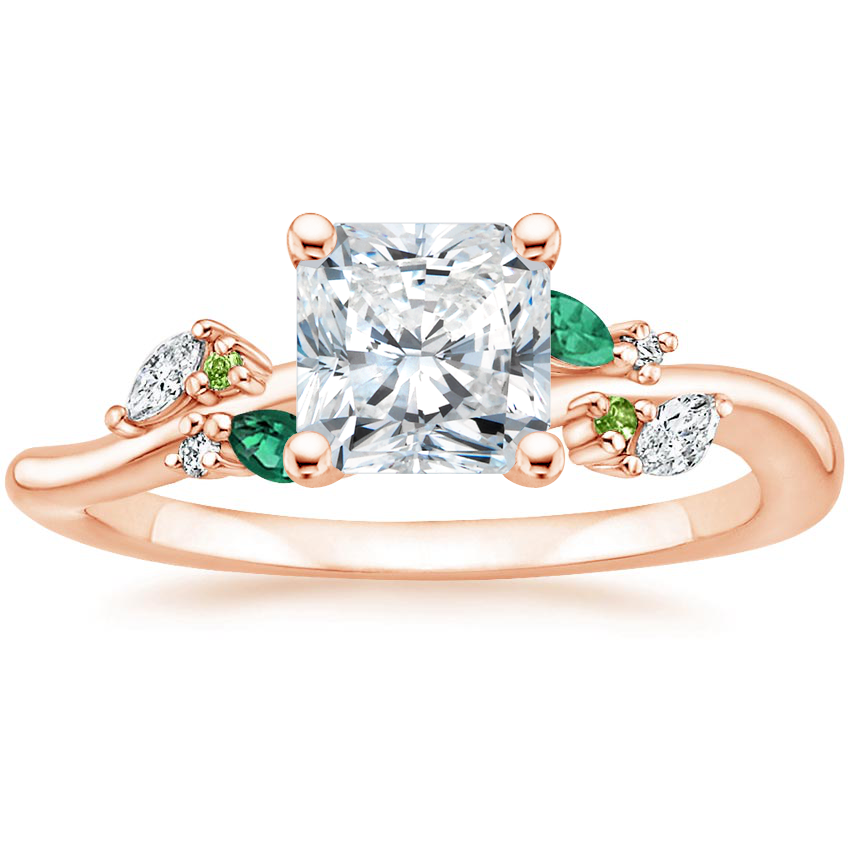 14K Rose Gold Arden Diamond Ring with Lab Emerald Accents with Luxe Ballad Diamond Ring (1/4 ct. tw.) with 0.51 Carat Radiant Diamond