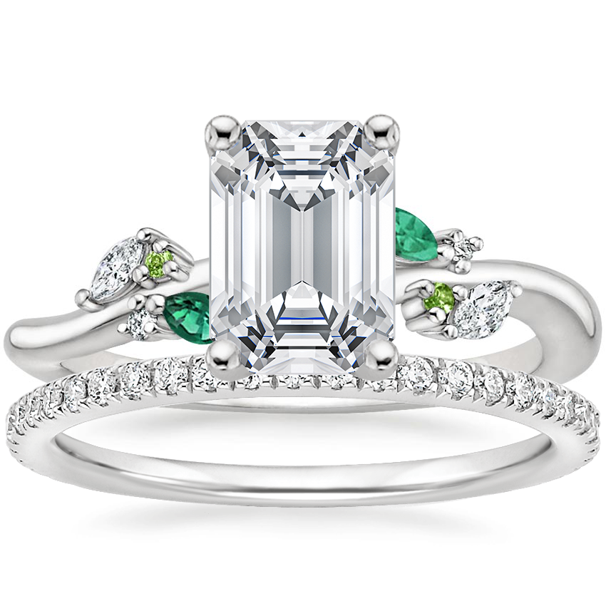 18K White Gold Arden Diamond Ring with Lab Emerald Accents with Luxe Ballad Diamond Ring (1/4 ct. tw.)