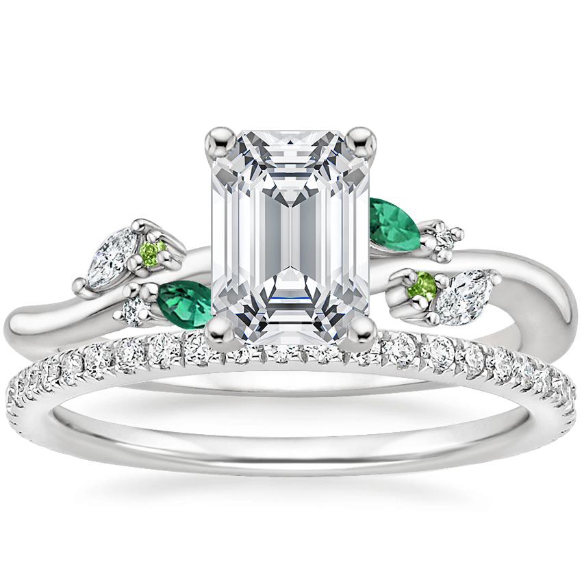 18K White Gold Arden Diamond Ring with Lab Emerald Accents with Luxe Ballad Diamond Ring (1/4 ct. tw.)