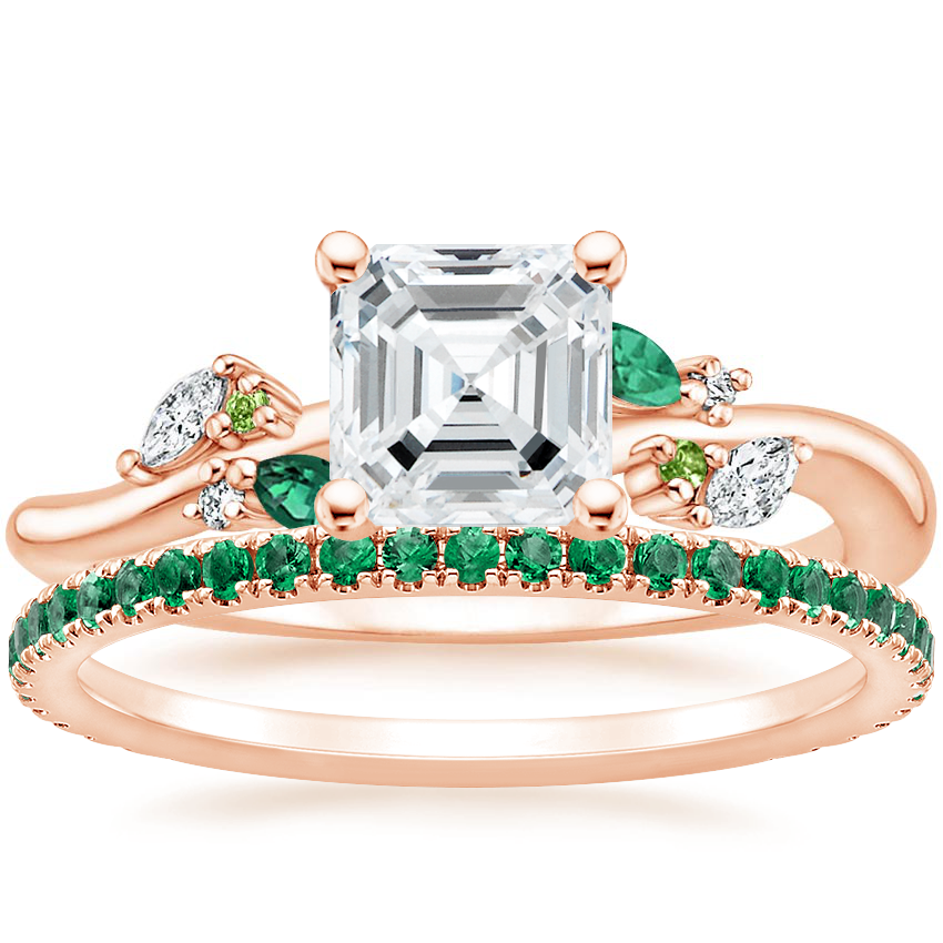 14K Rose Gold Arden Diamond Ring with Lab Emerald Accents with Luxe Ballad Emerald Ring