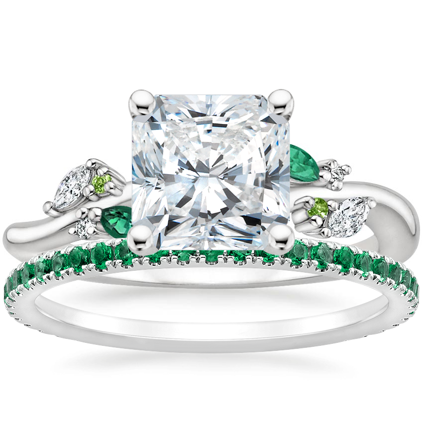 18K White Gold Arden Diamond Ring with Lab Emerald Accents with Luxe Ballad Emerald Ring