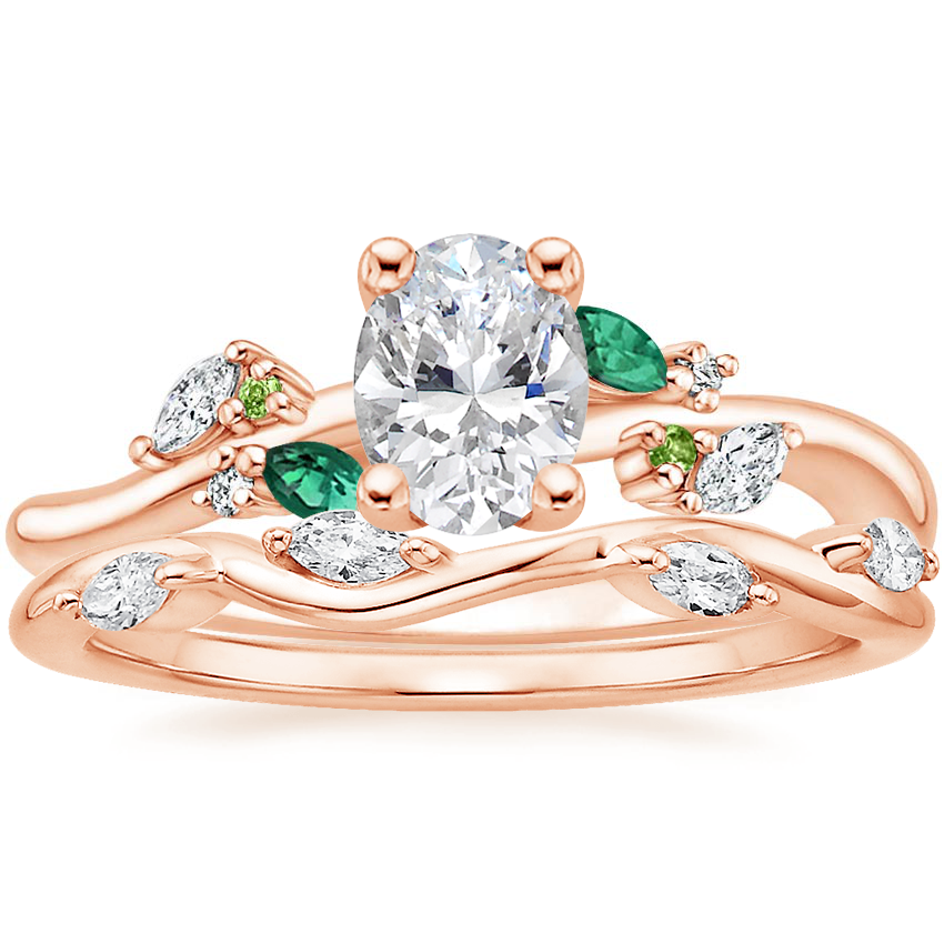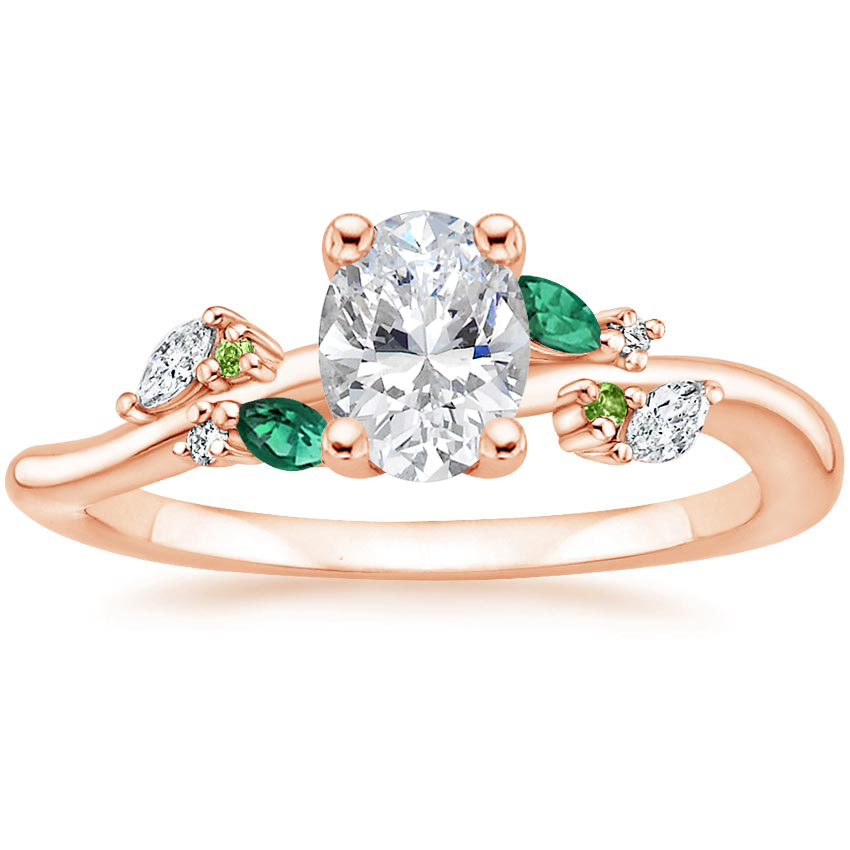 14K Rose Gold Arden Lab Diamond Ring with Lab Emerald Accents with Winding Willow Diamond Ring with 0.74 Carat Oval Lab Grown Diamond