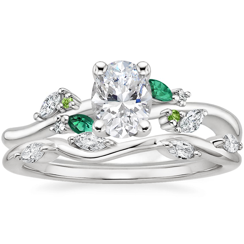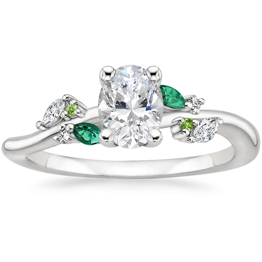 18K White Gold Arden Lab Diamond Ring with Lab Emerald Accents with Winding Willow Diamond Ring with 0.74 Carat Oval Lab Grown Diamond