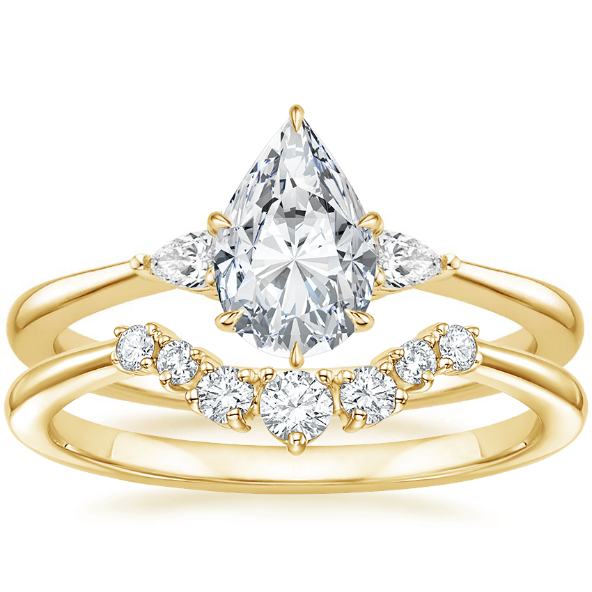 18K Yellow Gold Aria Contoured Lab Diamond Bridal Set with 0.75 Carat Pear Lab Grown Diamond