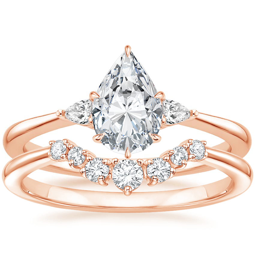 14K Rose Gold Aria Contoured Lab Diamond Bridal Set with 0.75 Carat Pear Lab Grown Diamond