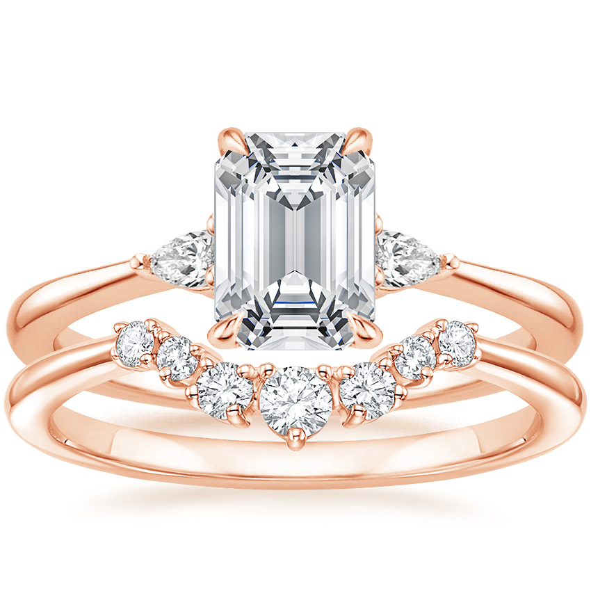 14K Rose Gold Aria Contoured Diamond Bridal Set with 0.5 Carat Emerald Diamond