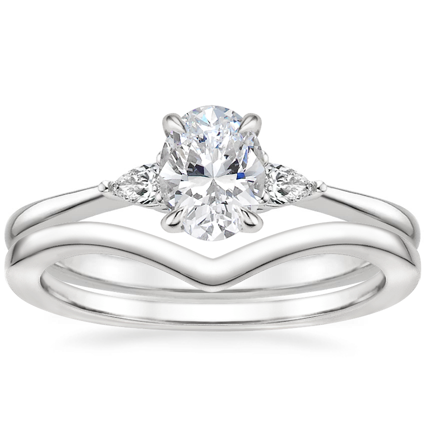 I wanted something with smaller side stones so it didn't distract from my beautiful 9x7 Oval Green Moissanite and this is perfect. I got it with the Lunette wedding band. You do have to wear a curved band with it. A straight one won't line up, it's looks strange and it's uncomfortable. I highly recommend going to showroom to look because it's so different online and you're spending so much money, you want to be sure. I also thought I was going to want platinum but gold looked more flattering. I also was looking at the petite opera setting but the side stones were too big for my taste and this was so similar. Overall very good experience and very happy with the quality.