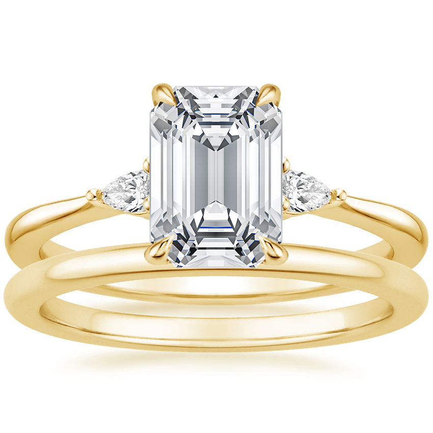 Aria Diamond Ring with Petite Comfort Fit Wedding Ring in 18K Yellow Gold