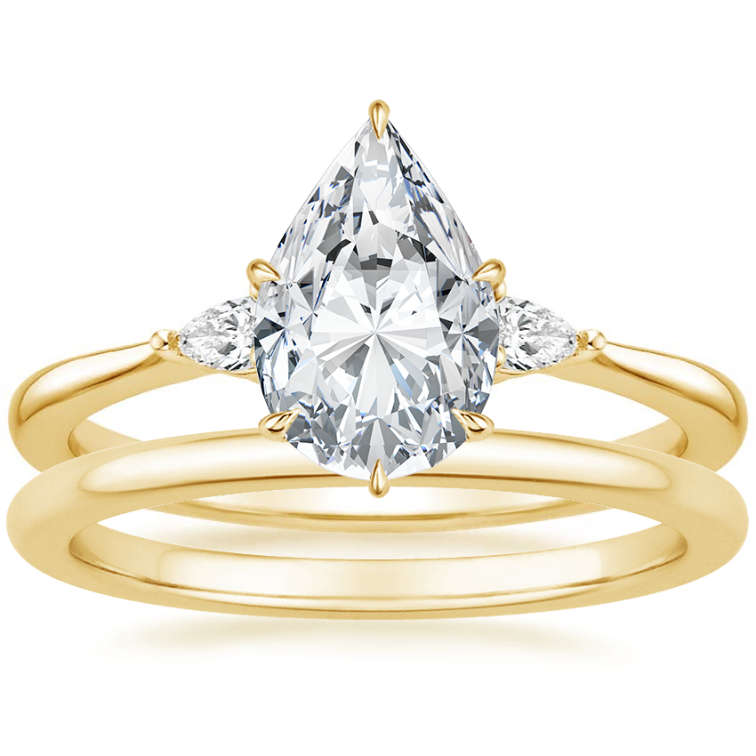 18K Yellow Gold Aria Diamond Ring with Petite Comfort Fit Wedding Ring