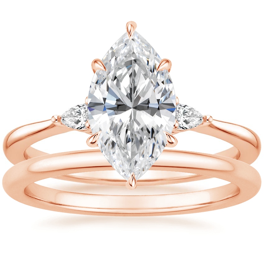 14K Rose Gold Aria Lab Diamond Ring with Petite Comfort Fit Wedding Ring with 1.66 Carat Marquise Lab Grown Diamond