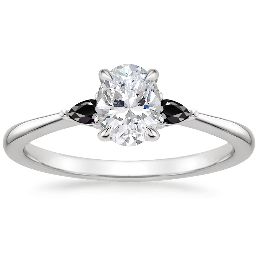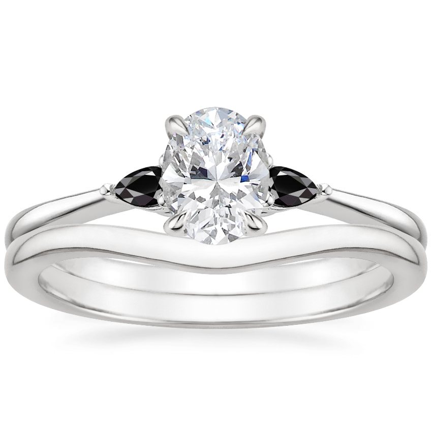 18K White Gold Aria Ring with Black Diamond Accents with Petite Curved Wedding Ring