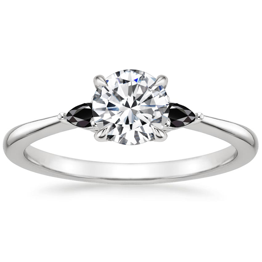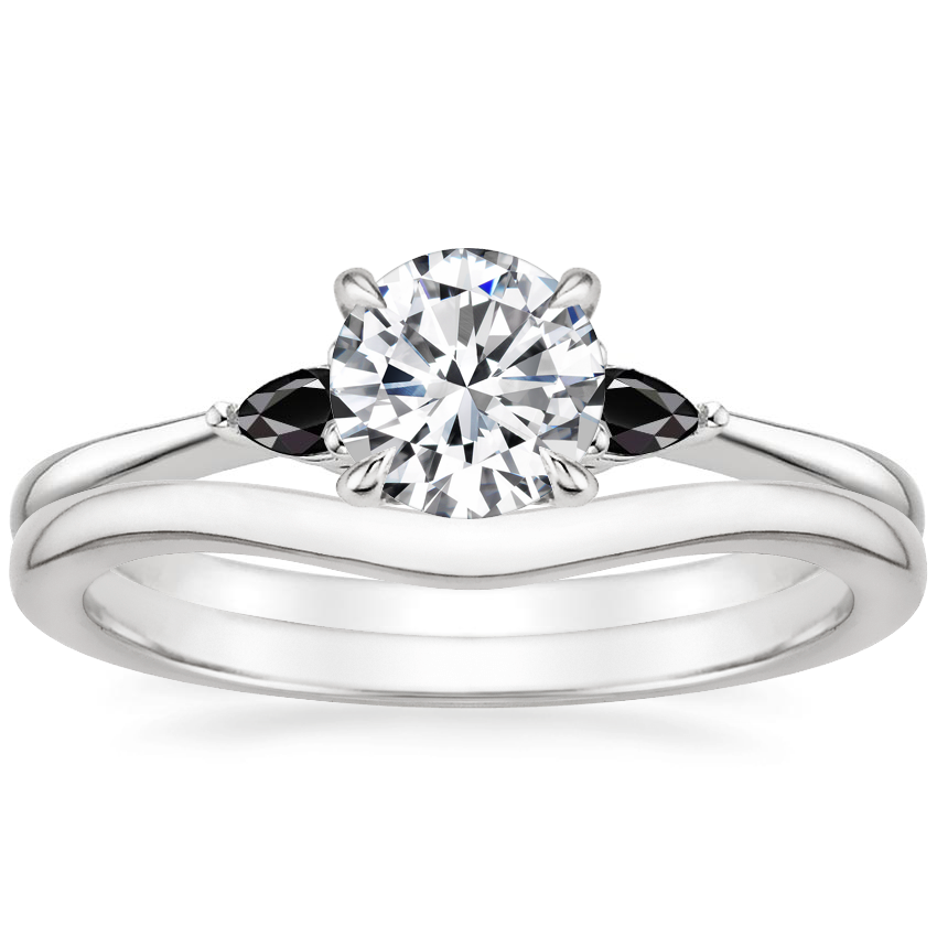 18K White Gold Aria Ring with Black Diamond Accents with Petite Curved Wedding Ring