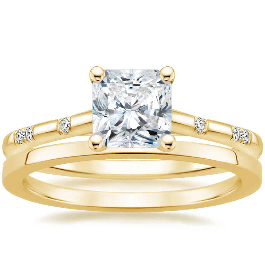 18K Yellow Gold Astra Diamond Ring with Petite Quattro Wedding Ring