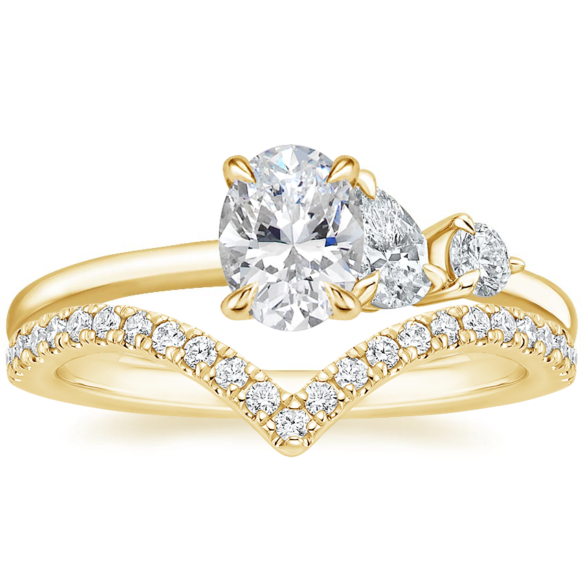 18K Yellow Gold Asymmetrical Diamond Ring (1/4 ct. tw.) with Elongated Luxe Flair Diamond Ring