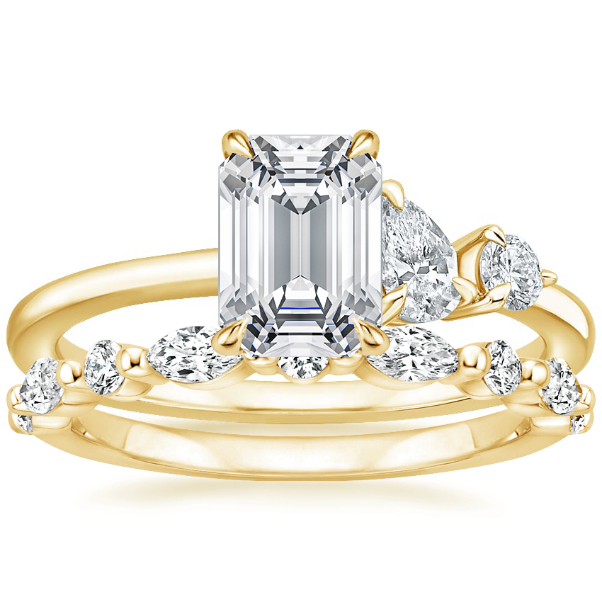 18K Yellow Gold Asymmetrical Diamond Ring (1/4 ct. tw.) with Versailles Diamond Ring (3/8 ct. tw.)