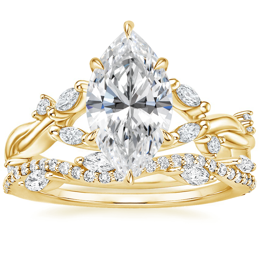 18K Yellow Gold Azalea Twist Diamond Ring with Luxe Winding Willow Diamond Ring (1/4 ct. tw.)