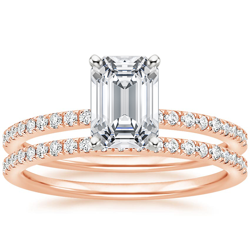 14K Rose Gold Ballad Diamond Bridal Set (1/3 ct. tw.) with 1.01 Carat Emerald Diamond