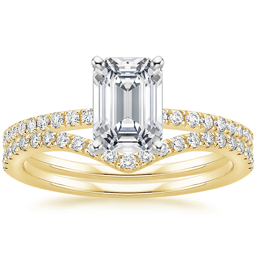 This classic ring set features an engagement ring with sparkling scalloped pavé diamonds that flow elegantly half of the way down the band. ... Read More