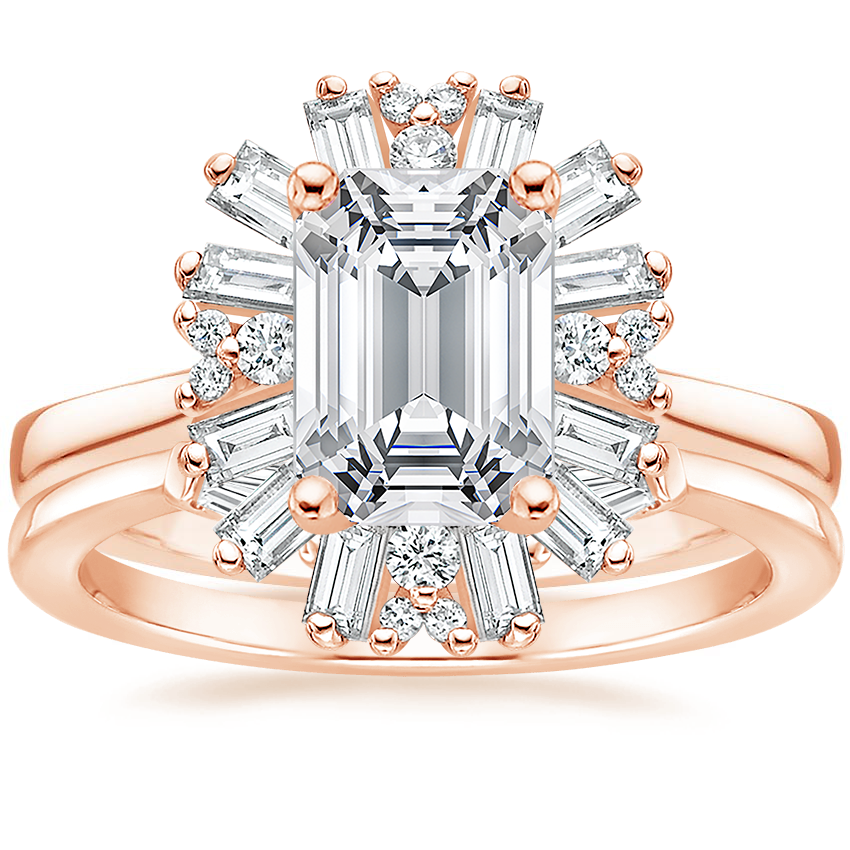 14K Rose Gold Ballerina Diamond Ring with Tapered Baguette Diamond Ring