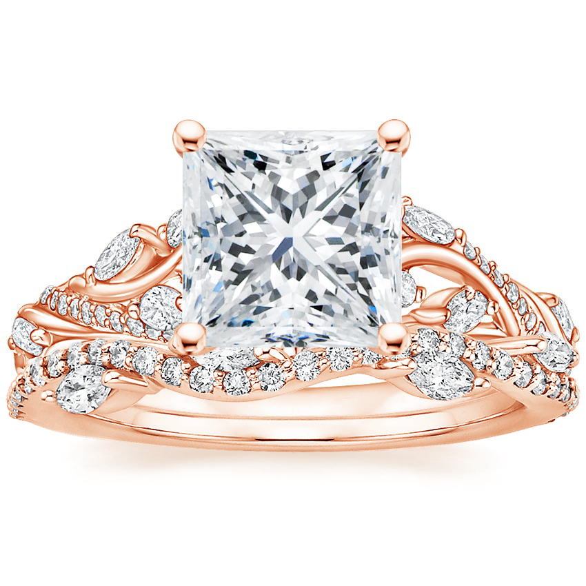 14K Rose Gold Begonia Vine Lab Diamond Ring (1/2 ct. tw.) with Luxe Winding Willow Diamond Ring (1/4 ct. tw.) with 2.09 Carat Princess Lab Grown Diamond